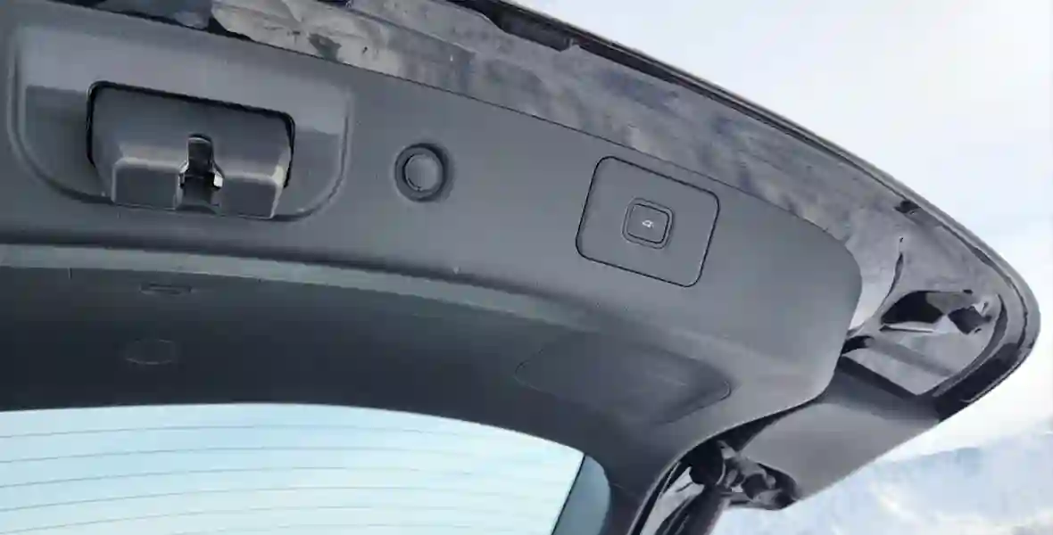 Задняя часть немного напоминает кроссоверы от Audi, особенно модели с приставкой Sportback. Основная светодиодная оптика полностью разместилась на крышке багажника. Когда электропривод поднимает массивную пятую дверь, сигналы дублируют световые элементы, встроенные в бампер. Кнопка открывания багажника тоже расположилась на самом бампере, прямо над номерным знаком. Чтобы облегчить ее поиск, производитель заботливо поместил над ней специальную наклейку. Чуть левее расположилась камера заднего вида.