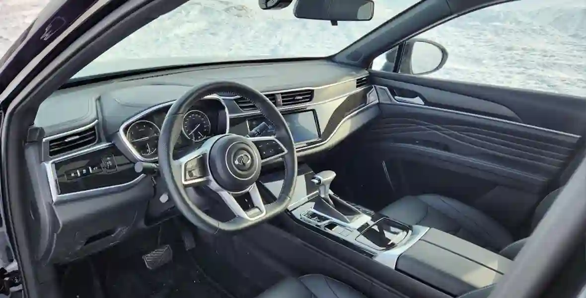 Плюс на этой панели очень выделяется синяя подсветка надписи Fengon, что особенно заметно вечером. К слову, этих самых надписей в салоне немало, например, они есть на руле и передней панели. При этом сам климат, по меркам китайских машин, работает крайне адекватно. При температуре в минус 16 на улице в салоне было стабильно тепло. Никаких запотеваний, резких перепадов температуры или неожиданных потоков холодного воздуха. Даже в морозы прогревается автомобиль быстро.